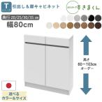 カウンター下収納を選ぶ際に最も重要なのがサイズです。幅80cmは固定ですが、奥行きは20cm、25cm、30cm、35cmと4種類から選べます。また、高さも60cmから103cmまで細かく調整可能です。設置場所のスペースに合わせてぴったりのサイズを選ぶことが、使いやすさを左右します。